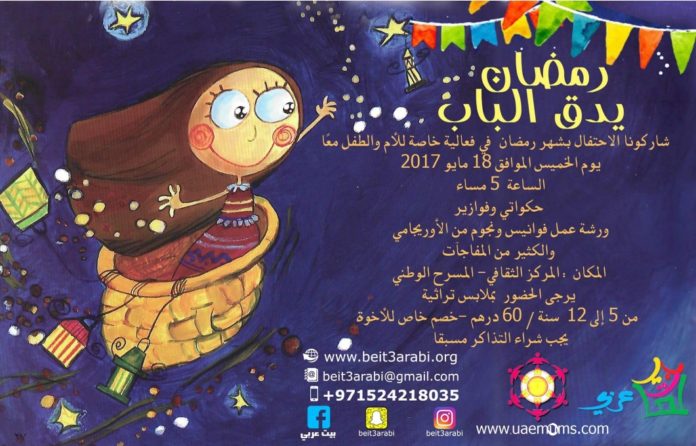 HomeEventsAhlan Ramadan Event Events Ahlan Ramadan Event By uaemomsae May 12, 2017 0 1722 Share FacebookTwitterPinterestWhatsApp اهلا بالشهر الفضيل , شاركونا الأحتفال مع الأطفال بفعاليات متنوعة من تقدمة بيت عربي و بتواجد أمولة زاد يجب التسجيل و شراء التذاكر مسبقا Ahlan Ramadan شاركونا بلقاء ممتع للترحيب بشهر رمضان بنشاطات متنوعة للأطفال يجب شراء التذاكر مسبقا الخميس 18 مايو، من 5- 8 مساء التذاكر متوفرة في المركز الثقافي First Name*Last Name*Email Address:* Number of Kids*Mobile Number* TagseventsfunhollyKIDSMOMSramadan Share FacebookTwitterPinterestWhatsApp Previous articleNest for KidsNext articleMorning Meetup uaemomsae RELATED ARTICLES Events Ahlan Ramadan February 16, 2025 Abu Dhabi Mum & Baby Meetup November 9, 2024 Events Flawless table October 20, 2024 Most Popular Ahlan Ramadan February 16, 2025 Top Winter Camps in UAE 2024 December 15, 2024 Mum & Baby Meetup November 9, 2024 Flawless table October 20, 2024 Load more Recent Comments Walaa yehia on Ahlan Ramadan Moufida on Ahlan Ramadan Rima on Ahlan Ramadan Fatima Hussain on Ahlan Ramadan Fatima Hussain on Ahlan Ramadan Fatima Hussain on Ahlan Ramadan آمال اسعد on Ahlan Ramadan Yasmin Ahmed on Ahlan Ramadan abir+hanoon on Ahlan Ramadan Yasmin Ahmed on Ahlan Ramadan Njmeh on Mum & Baby Meetup Abir mohd on Flawless table Manal Abed on Seha pink awareness 2024 Manal ahmad on Seha pink awareness 2024 Abir mohd on Seha pink awareness 2024 Ashwak tamish on Womens day 2024 Gihan Zina on Womens day 2024 Sarah rahall on Womens day 2024 هويدا مصطفي on Womens day 2024 لوسين جراح on Womens day 2024 Azura on Womens day 2024 abir mohd on Love & Lounging admin on Mothers day 2023 admin on Mothers day 2023 admin on Mothers day 2023 admin on Mothers day 2023 admin on Mothers day 2023 admin on Mothers day 2023 admin on Mothers day 2023 admin on Pink Walk حنين شديد on Mothers day 2023 مريم on Mothers day 2023 Haneen on Mothers day 2023 ربى الخضراء on Mothers day 2023 Lolla on Mothers day 2023 abir mohd on Mothers day 2023 Ola on Mothers day 2023 Aya on Pink Walk Reem on Medeor pink awareness Amina on Mothers day 2020 Wafaa Hassan on Mothers day 2020 Sameh on Winter camps 2019 Dalia on AlReem Dental & Cosmetic center open day Dalia on AlReem Dental & Cosmetic center open day جهاد محمد عبدالله on AlReem Dental & Cosmetic center open day norma damash on AlReem Dental & Cosmetic center open day Mais on AlReem Dental & Cosmetic center open day Mais on AlReem Dental & Cosmetic center open day دانه on Summer Camps 2019 Tessy jacob on Mothers Day Panel Samar on Mothers Day Panel reema on Mothers Day Panel Hiba Amer on Mothers Day Panel Nedhal on Mothers day Haya on All about beauty morning meetup نادية مصطفى on Lets celebrate Arabic day majdoleen on Lets celebrate Arabic day Braa on Winter holiday guide in UAE اسماء on Mothers day celebration Weaam on Murjan Splash Suzan Ali on Baking with love Roba Alkhadra on Mothers day celebration Shreen on Mothers day celebration Housna on International Womens day Fahima on International Womens day سوزان محمد on Smart parenting Mays Alhalabi on Water Fun Maha on Sweet morning Lubna on Pink Morning Fatima zaiton on Pink Morning Rania on Pink Morning Farah on Play date – summer break – Orange wheel Maysaa Al- Omari on Play date – summer break – Orange wheel uaemomsae on Summer camps – 2017 Shihab Bin Sultan on Summer camps – 2017 Lorna on Nest for Kids Ghoussoun on Polycystic ovary Event Salsabil khaled on Splash party Rogia on Splash party Mais on Baking with kids Ichrak on Baking with kids Rana Abu Khadra on Mothers day celebration Zeinab on International Women Day Event اسما on International Women Day Event